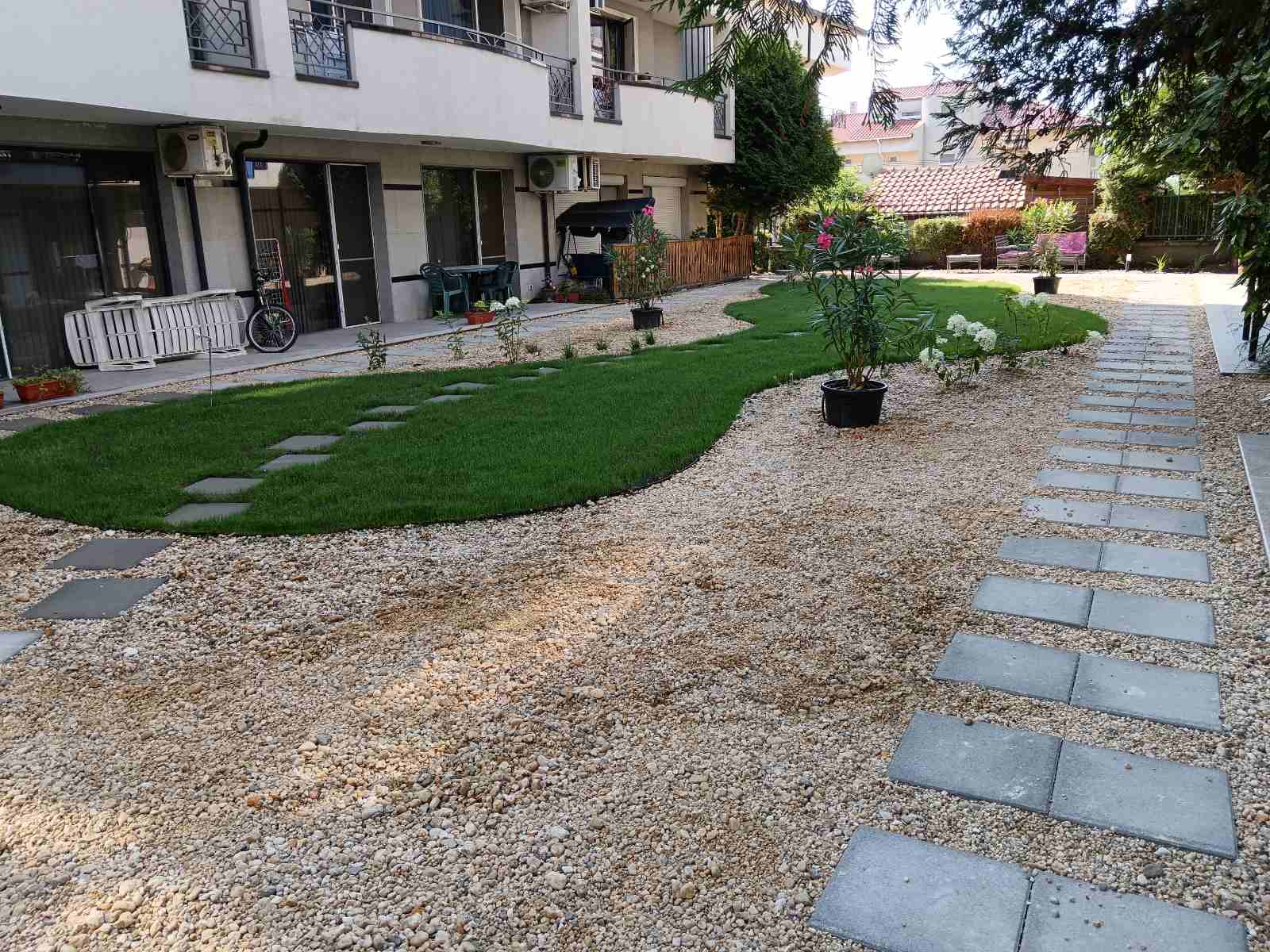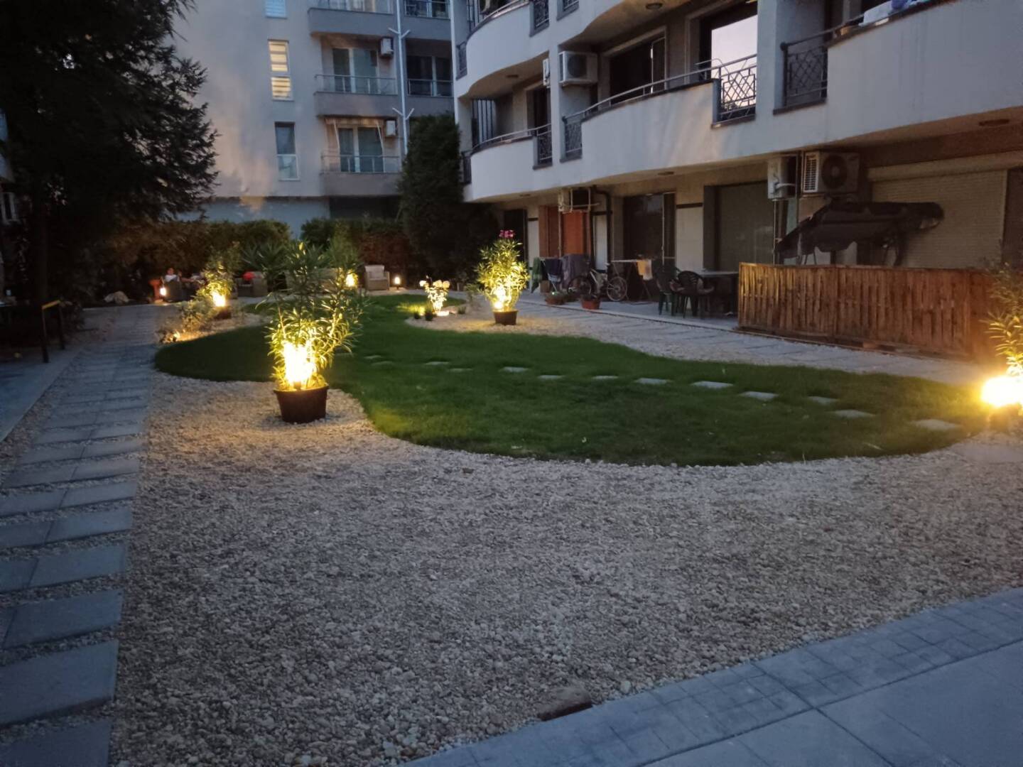 Това беше един от най-емоционалните ни обекти. От пълното разочарование до усмивките на хората, които започнаха да прекарват време в двора отново. Красотата не винаги идва лесно, особено когато трябва да се изгради върху история на загуба. Но с правилен проект за озеленяване, внимание към детайла и човешко отношение – резултатите говорят сами.